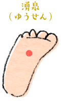土踏まずの五指を曲げるとくぼむところ。体のエネルギーが湧き出てくるツボ。