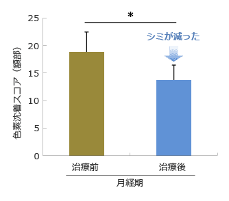 月経初日から翌月の月経まで桂枝茯苓丸料加薏苡仁を服用したところ、服用していない周期に比べてシミの個数が減少しました。