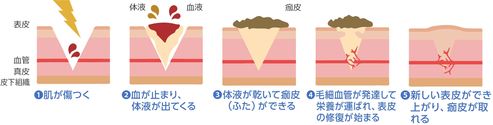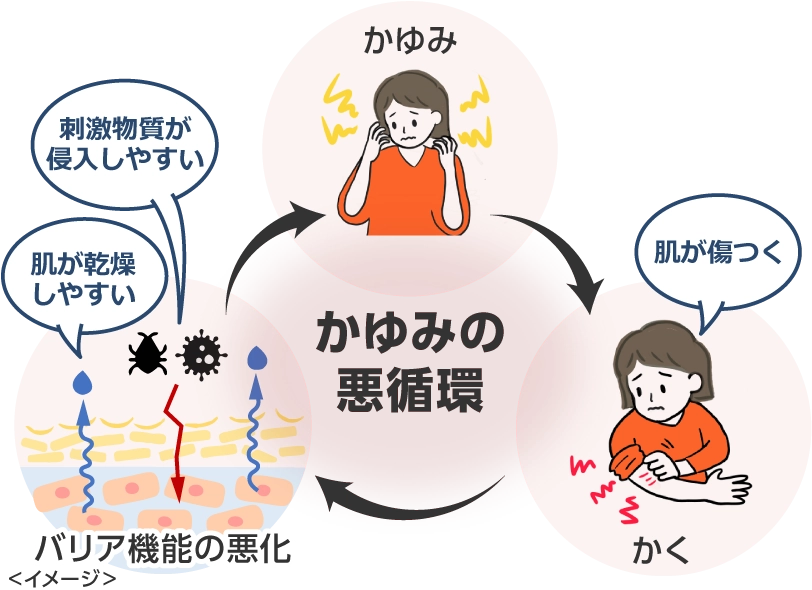 *1 痂皮(かひ):炎症やかゆみによって傷ついた皮膚から漏れ出した体液や血液が固まった肌状態のこと。