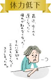 「物忘れ」「イライラ」「しびれ・痛み」「頻尿」「体力低下」「関節痛」「高血圧による耳鳴り」「便秘」「目のかすみ」「五十肩」「聴力低下」など、さまざまな症状が現れてくることありませんか?