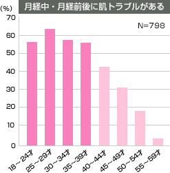 月経中や月経前後に肌トラブルがあると答えています。※参考:クラシエ調べ(2009年2月)