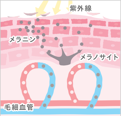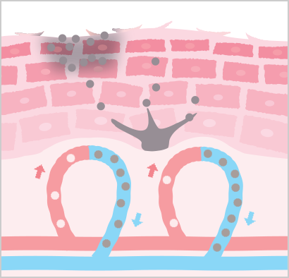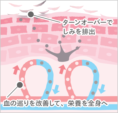 この「血(けつ)」のめぐりが悪く、滞った血のことを"瘀血(おけつ)"といい、瘀血になりやすい人は、「血(けつ)」のめぐりが悪いことから、代謝が滞っていると考えられています。瘀血によって肌の新陳代謝が低下すると、色素が沈着してしみ(シミ)になるほか、体に栄養素が行きわたらずに肌あれやくま、にきび(ニキビ)などの肌トラブルが起こりやすくなるといわれています。