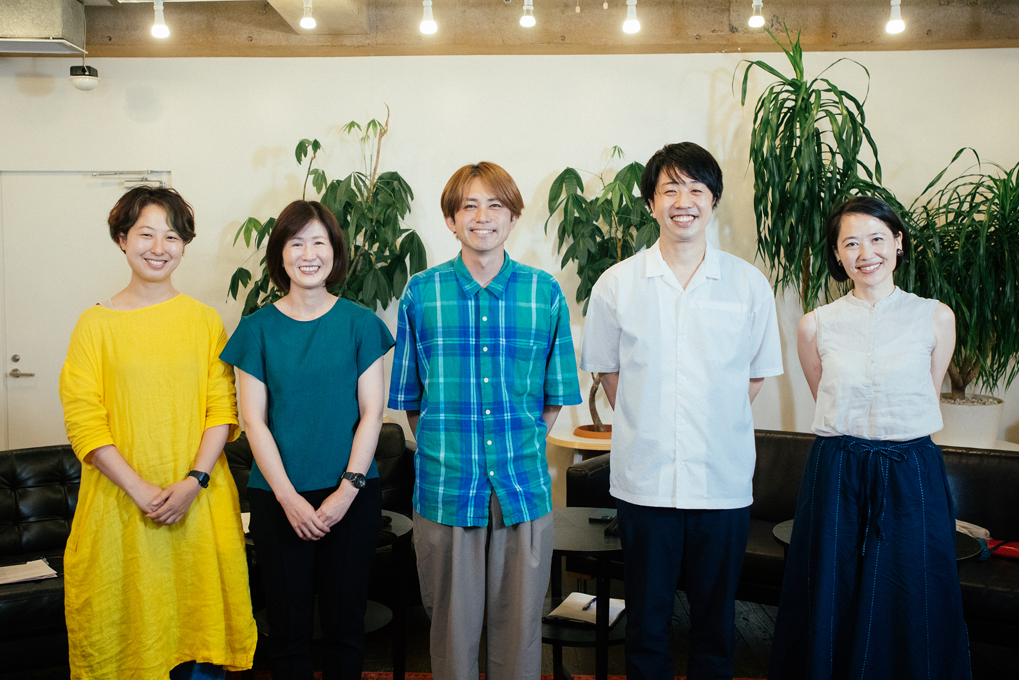 左から、アルケバボウの企画編集と当日の司会を担当した株式会社ロフトワークの服部さん、クラシエプロフェッショナル細木原、ミネさん、平松さん、有馬さん。