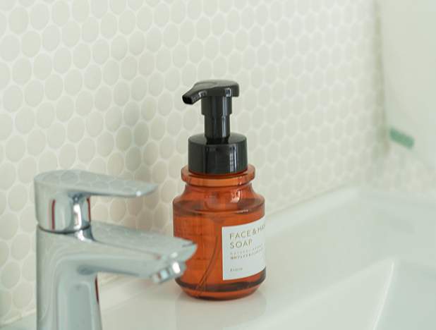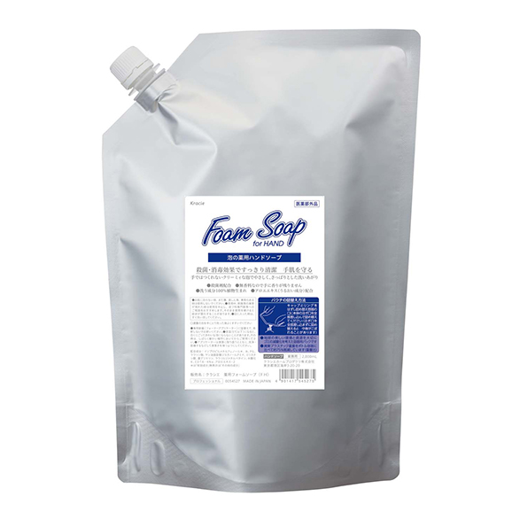 ポンプを押すと液状ソープがきめ細かい泡になるフォームソープ。殺菌+消毒効果で手肌をすっきり清潔する【薬用タイプ】、洗顔・手洗い・シェービングと3通りの使い方ができる【3WAYタイプ】の2種類をご準備しているので用途や設置場所に応じてお選びいただけます。パウチタイプの商品は廃棄プラスチックの重量をボトル容器に比べて約75%軽減!(重量比)
