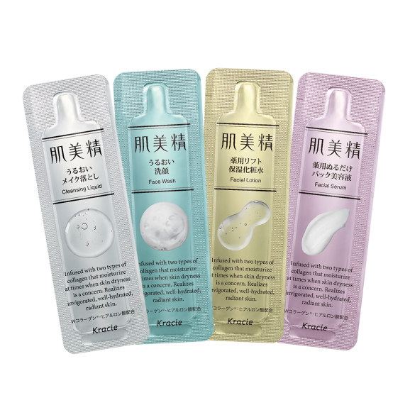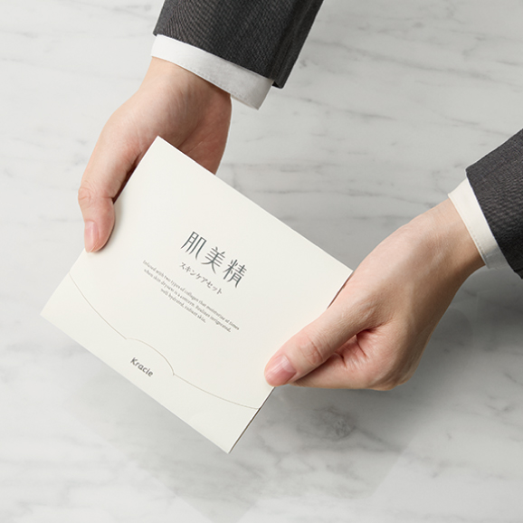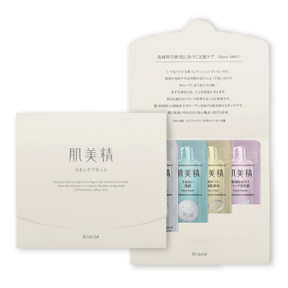 肌美精4アイテムのスキンケアセット。アソートセットのお渡しで、上質なおもてなしを。