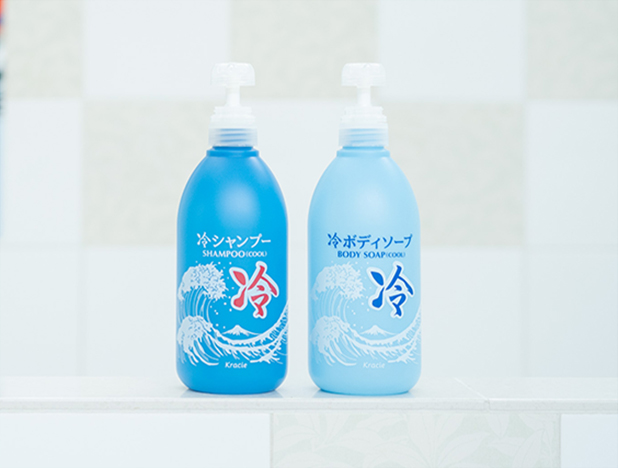 頭皮がベタつく、ニオイが気になる、ムレて髪がペタンとする。蒸し暑い日本の夏は、頭皮や髪の大敵でもある。そんな夏を、もっとクールに、もっとクリーンに過ごすために生まれた「冷(ヒヤシ)」。爽快な使い心地と清涼感あるデザインは、もはや夏の風物詩のひとつ。超冷涼成分配合のシャンプー&ボディソープでサッパリと洗い上げ、汗をかいてもサラサラ感が持続。宿泊・温浴施設での冷体験で、暑い日も涼しい顔で。
