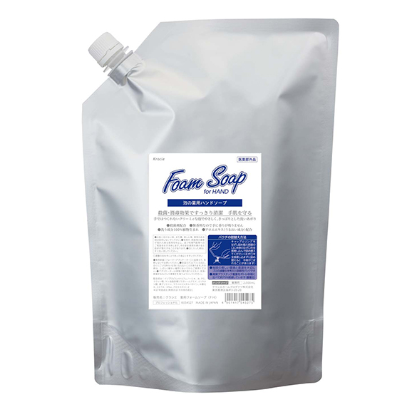 ポンプを押すと液状ソープがきめ細かい泡になるフォームソープ。殺菌・消毒効果ですっきり清潔