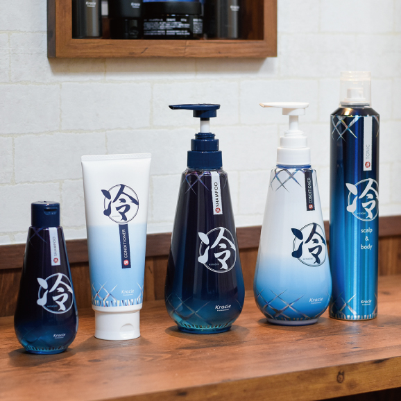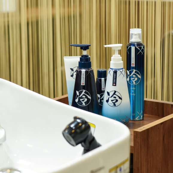 頭皮がベタつく、ニオイが気になる、ムレて髪がペタンとする。蒸し暑い日本の夏は、頭皮や髪の大敵でもある。そんな夏を、もっとクールに、もっとクリーンに過ごすために生まれた「冷(ヒヤシ)」。爽快な使い心地と清涼感あるデザインは、もはや夏の風物詩のひとつ。超冷涼成分配合のシャンプー&コンディショナーでサッパリと洗い上げ、汗をかいてもサラサラ感が持続。ベタつく夏のボディにも使えるスプレータイプのトニックで、気になるニオイをブロック。サロンでの冷体験で、暑い日も涼しい顔で。