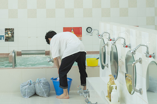 雨の日も、晴れの日も、銭湯にできることは、変わらない「居場所」であり続けること。開店準備をしながら、頑張る人たちに、静かにエールを込める。やわらかな湯気、清潔な肌、ドライした髪のシャンプーの匂いは、日々の役割をさりげなくほどくらしい。今夜も、町の人たちが、ほこほこと帰路に着くのを見送った。