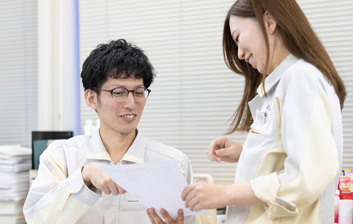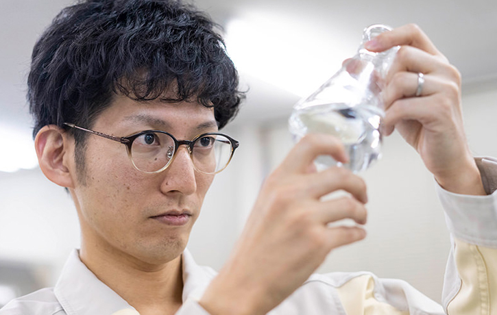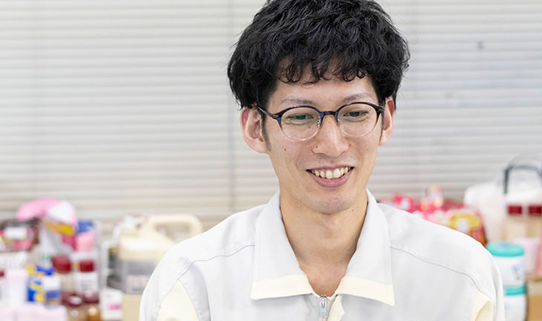 「いち髪」や「肌美精」など、ホームプロダクツカンパニーが手がける主力ブランド商品の大半は、津島工場で製造しています。千種類以上もの原料をはじめ、資材や容器に入れる前の中間製品、容器に充填した後の最終製品などを対象に、規定通りの工程で製造されているか、仕上がりに問題がないかをチェックするのが私たち品質課のミッションです。商品として出荷の可否を最終的に判定するセクションなので、大きなプレッシャーを感じますが、半面、市場から各ブランドに寄せられる信頼を支えているというやりがいがあります。また、職務のなかでは、検査方法や工程について、工場の製造セクションや研究所、本社などと協議することもあります。よりよい製品づくりを目指し、多くの関係者と一体感を感じながら取り組んでいける点も、やりがいのひとつです。