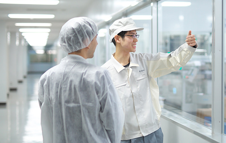 医薬品を販売する場合、事前に品質を明記して申請することが、法律で定められています。高岡工場の製造工程で、申請通りの品質の製品をつくり出せているかを管理・監督するのが、技術課のミッションです。これに関連して、研究所で開発された新製品を量産する際の体制整備や、既存の製造工程の改善検討、新設備の導入テストなども、私たちのミッションになります。対象とする製品や工程はその都度違いますので、決まったパターンを当てはめられないのが大変なところです。半面、常に新たな課題と対峙することで知見を広げていける点は、面白味でもあります。また、より高効率に製品を生み出していくための対策を考え出し、それが形を成すという意味では、達成感も味わえます。