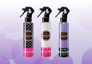 写真、右から 「プロスタイルフワリエ 毛先ワンカールミスト」 「プロスタイルフワリエ 巻き髪スタイルミスト」 「プロスタイルフワリエ ストレートスタイルミスト」 |