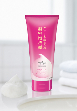 「ナイーブ クリーム生まれの濃密泡洗顔(ヒアルロン酸&ローズヒップエキス配合)」は「保湿クリーム成分」をたっぷり配合しているのに、「スピーディホイップ成分」の働きで素早く泡立ち、ふんわりとやわらかい濃密泡が毛穴の汚れをしっかり落とします。肌全体はもちろん、特にカサつきやすい目や口の周りも、ぷるぷる肌に導きます。