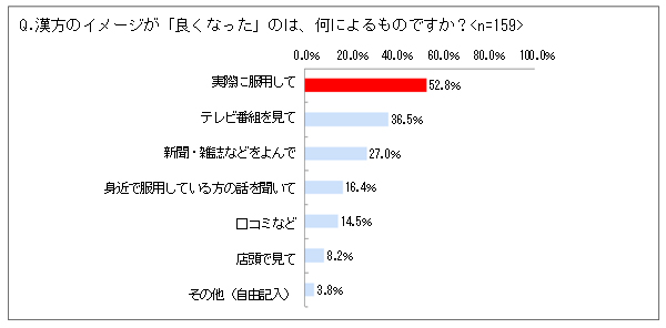 漢方薬に対するイメージが以前に比べ「良くなった」と答えた方が全体の28.4%で、その理由の半数以上が、「実際に