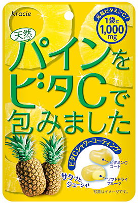 1) 天然のパイナップルを当社独自の製法により、ビタミンCでコーティングしました。