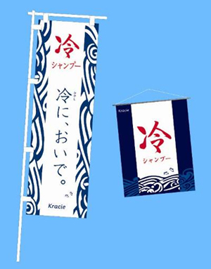 暑い夏に、理容店において冷感を感じられる“冷シャンプー”がブームとなっています。クラシエは業界に先駆け、2008年に理容サロン用シャンプーを開発、ブームをけん引してまいりました。汗ばむ頭皮をスカッと洗い上げる「冷シャンプー」は、夏の定番サービスとなっており、理容業界の活性化にも寄与しています。理容サロンの店頭で、今年は夏の情緒漂う「冷旗(ひやしばた)」や「冷(ひやし)のぼり」を掲げ、粋な雰囲気を演出します。