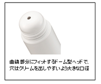 ●ドーム型ヘッド ワキなどの曲線部分にもしっかりフィットするので、 片手で簡単に塗って除毛できます。