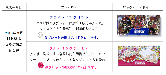 村上隆氏とのコラボレーション全3品の発売を機に、新しいファンへのトライアルの促進、市場の活性化を図ります。「FRISK Neo ミックスフルーツ」の詳細は下記の通りです。