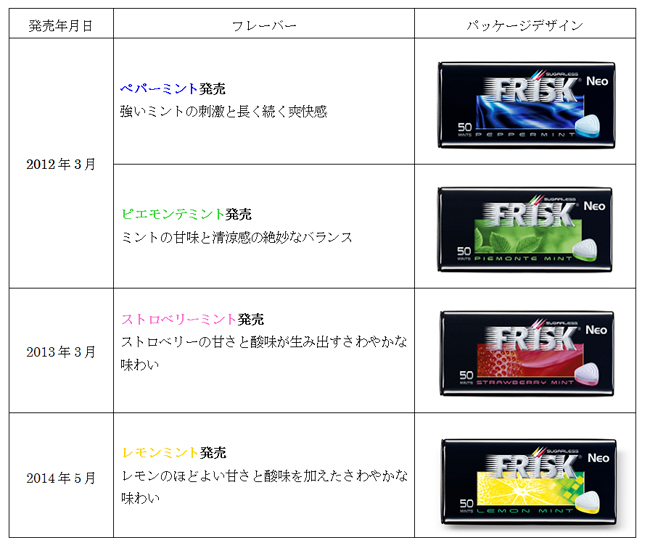 【参考資料(2):現在発売中のフリスクNEO一覧】