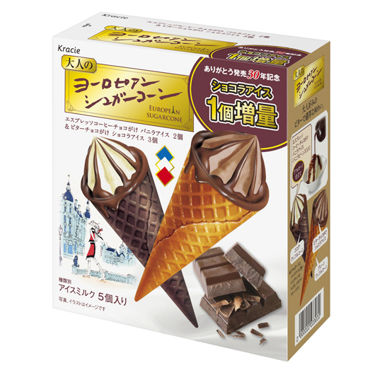今回、「ヨーロピアンシュガーコーン」ブランド発売30年を記念して、ショコラアイスを1個増量しました。