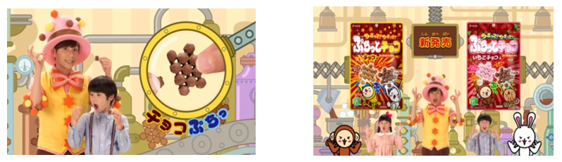 TVCMを見たお子様が思わずちぎりたくなるダンスと音楽で、 「ぷちっとチョコ」「ぷちっとくだもの」の魅力を伝えます。