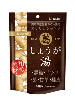 (1)和漢素材の黒糖、ナツメ、葛、甘草、桂皮、を配合 (2)高知県産生姜を100%使用 蒸ししょうがを加え、辛くて旨い味わいに仕上げました (3)寒い季節の温活をサポートします |