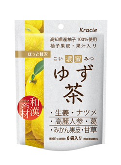 (1)和漢素材の生姜、ナツメ、高麗人参、葛、みかん果皮、甘草を配合 (2)高知県産柚子を100%使用 果皮、果汁を使用 し、濃厚で風味豊な味わいに仕上げました (3)寒い季節の元気をサポートします |