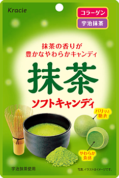 「抹茶ソフトキャンディ」は、当社独自のノンクッキング製法で、抹茶の風味をそのまま生かしたソフトキャンディです。外側はパリッと、内側はやわらかな食感が楽しめる2層設計です。カラダにうれしいコラーゲンを配合しました。