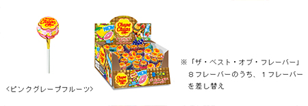 2)従来から展開している「チュッパチャプス ザ・ベスト・オブ・フレーバー」のラインアップ(コーラ・チェリー・ラムネ・ストベリー
