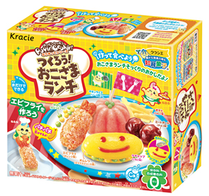 “おこさまランチ”は、子どもに最も人気のある外食メニューで、知育菓子(R)で作ってみたいメニューの1位にもなっています(当社調査)。粉と水をまぜて、エビフライやオムレツ、チキンライスなどが作れます。エビフライを作るときには、本物の油で揚げている様にパチパチと音がします。