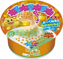 1)2種類のアイスをカップの中でねり混ぜると、色が変わり、さらに粘り気のあるジェラート風の“のびーる”アイスに変わります。 2)「ブドウ味」は、青色のアイスと白色のアイスをまぜると赤色のアイスに、「オレンジ味」は、緑色のアイスと白色のアイスをまぜるとオレンジ色のアイスに変化します。 3)「ブドウ味」には「カラフルチョコ」、オレンジ味には「つぶつぶチョコ」をトッピング。 |