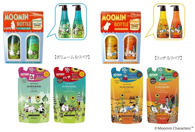 年齢による「うねり」、「くせ」、「パサつき」の原因となる“髪のゆがみ”を整え、素直な髪に導くヘアケアブランド「ディアボーテ HIMAWARI」の初のキャラクターコラボ商品です。ムーミンのデザインボトルをお楽しみいただけます。