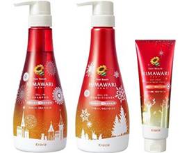 「ディアボーテ HIMAWARI」は、年齢による髪のうねり、くせ、パサつきの原因となる“髪のゆがみ”を整え、素直な髪に導くヘアケアブランドです。これからの乾燥が気になる季節に向けて、今回“赤いHIMAWARI”を発売。赤をベースとし、白い雪が舞う街や雪原に、うさぎなどの雪国の動物たちを配し、幻想的な雰囲気の中に温かみを感じさせるパッケージデザインで、冬のバスタイムを華やかに演出します。