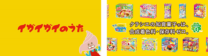 クラシエフーズ株式会社は、「クラシエフーズの知育菓子(R)は合成着色料・保存料ゼロ」をメロディにのせて歌った動画「イガイガイのうた」(URL http://www.nerune.jp/igaigai/)第4弾の4編を7月17日(火)から公開します。この動画は、世の中の様々な意外な事とともに、クラシエの知育菓子(R)の意外な事実として、「合成着色料・保存料ゼロ」を耳に残るメロディにのせて紹介します。