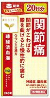 | 成 分 | 成人1日の服用量12錠(1錠353mg)中 疎経活血湯エキス粉末・・・3,000mg [ジオウ・トウキ・トウニン・センキュウ・ブクリョウ・ビャクジュツ各1.0g、ゴシツ・リュウタン・チンピ・キョウカツ・イレイセン・ボウイ・ボウフウ各0.75g、ビャクシ・カンゾウ各0.5g、シャクヤク1.25g、ショウキョウ0.25gより抽出。] 添加物として、タルク、ステアリン酸Mg、CMC-Na、二酸化ケイ素、ポリオキシエチレンポリオキシプロピレングリコール、ヒプロメロースを含有する。 |
