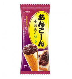 「あんこーん」は、北海道産小豆を100%使用した風味豊かなあんことシュガーコーンを組み合わせた和風コーンアイスです。ワッフルシュガーコーンの内側にバター風味チョコをコーティングし、バニラアイスに小倉あん(粒あん)をトッピングしました!小倉トーストの美味しさをコーンアイスで表現した、4つの素材の絶妙なバランスをお楽しみください。