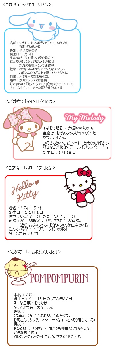 ~「シナモロール」「マイメロディ」「ハローキティ」「ポムポムプリン」~