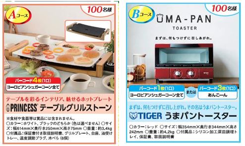 人気の家電「テーブルグリルストーン」「うまパントースター」が当たる