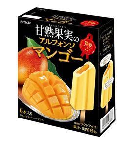 | 特徴 | ・華やかな香りとまろやかな味わいに仕上げたアイスのセンターに、マンゴーをぎゅっと濃縮したような特製ジュレをいれた贅沢なマンゴーアイスバー ・「マンゴーの王様」と呼ばれるアルフォンソマンゴーの果汁・果肉を使用し、マンゴー果汁・果肉を16%配合 |