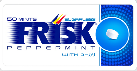 新しいパッケージには、中身が分かりやすいよう小粒のタブレットのイラストを入れました。小粒で瞬時にリフレッシュできる「フリスク」の特徴をアピールしたデザインです。4つのフレーバーでお楽しみください。