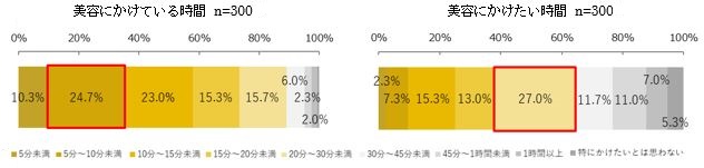 ・美容に1日「20分以上」かけることが理想だが、現実は、「5分~10分未満」に留まる。