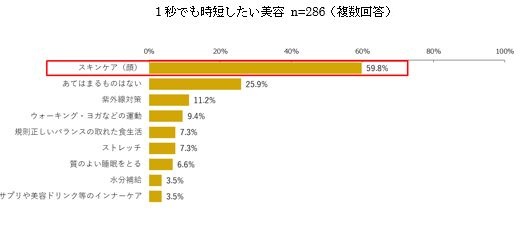 ・顔のスキンケアは見えるからこそ重視するが、約6割が1秒でも時短したいと回答。