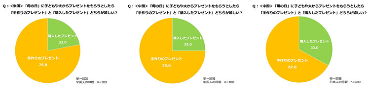 米国、中国、日本の母親がいずれも「購入したプレゼント」より「手作りのプレゼント」が嬉しいと回答