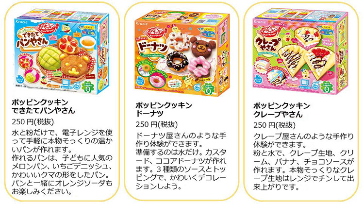 | ■知育菓子(R)「ポッピンクッキン」キャンペーン実施中! 「ポッピンクッキン」ブランドの商品を買って、作った商品の写真をSNSにアップすることでデジタルスタンプがもらえる「おみせやさんスタンプラリー」キャンペーンを実施しています。 スタンプ1つで、全員にデジタル認定証をプレゼント!スタンプ3つで、選べるプレゼントに応募できます。詳細は下記のキャンペーンサイトをご確認ください。 【キャンペーンサイト】https://www.popincookincp.com/ |