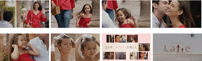 「mä&më Latte (マー&ミー ラッテ)」のCMは、ロサンゼルスを舞台に、映画「プリティ・ウーマン」の楽曲に乗せて、親子で同じファッションをするだけでなく、同じヘアスタイルをする「リンクヘアー」を日常に取り入れ、美しい髪を楽しむ姿をポップに描き、このブランドが親子2人、それぞれが美しくなれるシャンプーであるということをお伝えしています。今年の春に放映した「2人のレディー 登場」篇では、ショッピングやヨガ、ネイルのおしゃれ、お掃除、ランニング、お料理などを「リンクヘアー」で仲良く楽しむ「2人のレディー」を描きました。新CM「2人レディー 待合わせ」篇では、パパとの待合わせ場所で手を振るママの後ろから、ひょっこりと娘が登場してパパとハグをする仲睦まじい家族の姿とともに、サラサラと風になびく美しい2人の髪を表現しています。