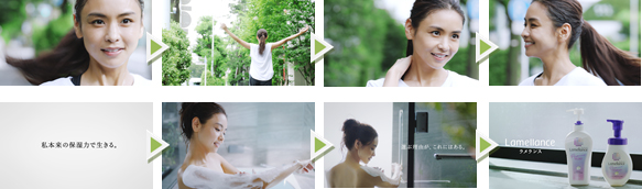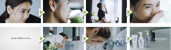 今回のCMでは、日頃から、自分が本来持っている力を引き出すための努力をしている滝沢眞規子さんが、いつも通り、ウォーキングをしたり、スムージーを飲んでいるところをリアルに描いております。ウォーキングをしながらストレッチをしたり、こだわりの材料でスムージーを作ったり、1つひとつに自分本来の力で生きるための知恵があるのもポイントです。そして、そんな彼女の「選ぶ理由があるから、ラメランス」の一言で締めくくられます。生活音だけで描かれるリアルさや迫力も感じていただければと思います。