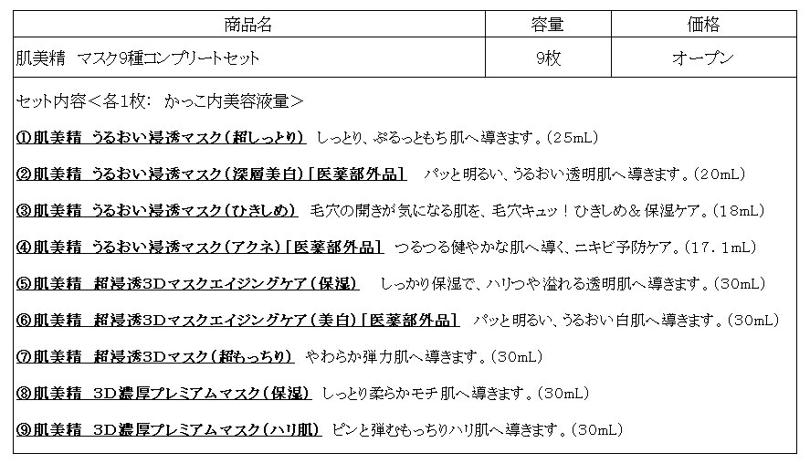 ●「肌美精」のマスク全9種を試せるコンプリートセット