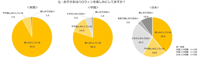 米国、中国では9割以上、日本の約6割の子どもがハロウィンを楽しみにしていると回答
