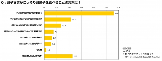 こっそりおやつ対策は「子どもが届かない場所に置く」「子供がいないうちに場所を変える」。