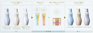 髪のダメージをケアするだけでなく、その根本である頭皮のケアを求める方に向けた、毎日使えるスカルプケアライン。「柔肌」頭皮を実現し、バージンヘアのような柔らかく、しなやかな髪へ導くライン。